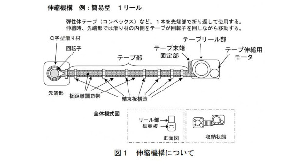 高伸縮比マニピュレータ(伸縮比が大きく、かつ過負荷に対して破損しにくい、コンベックステープによる伸縮機構)